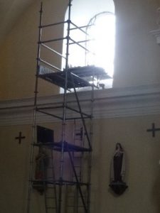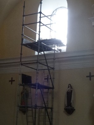 2ème étape : vitraux restaurés avec changement du réseau de plomb et le doublage par la pose de protection extérieure en verre feuilleté